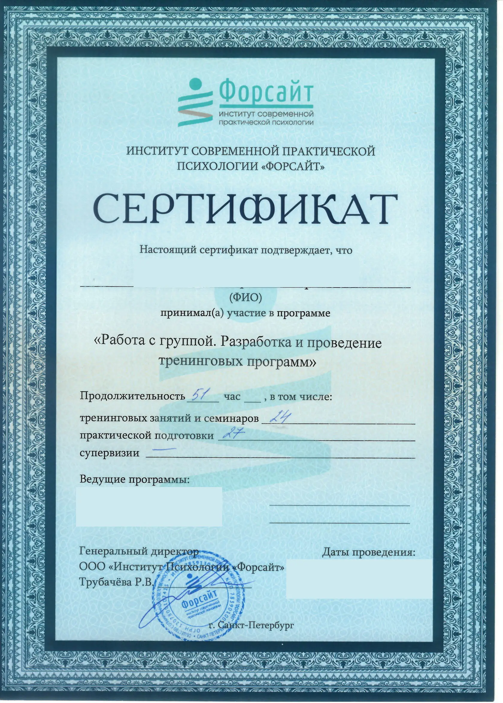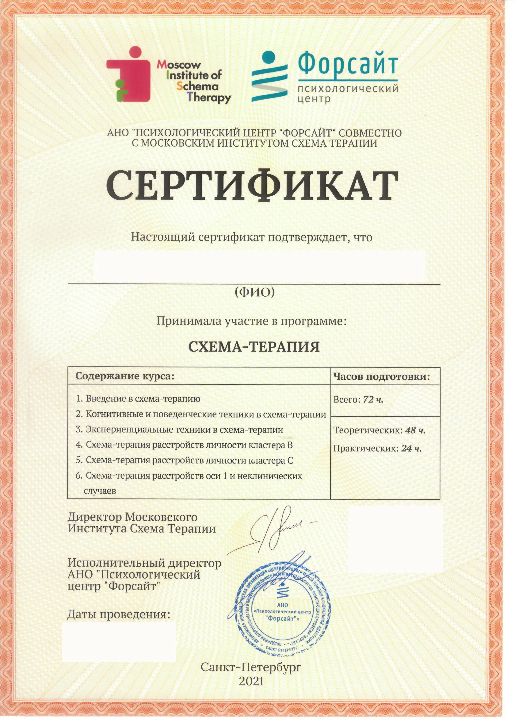 Я непрерывно обучаюсь, постоянно провожу консультации, имею большой опыт собственной работы с терапевтом, посещаю терапевтические, интервизорские и супервизорские группы.